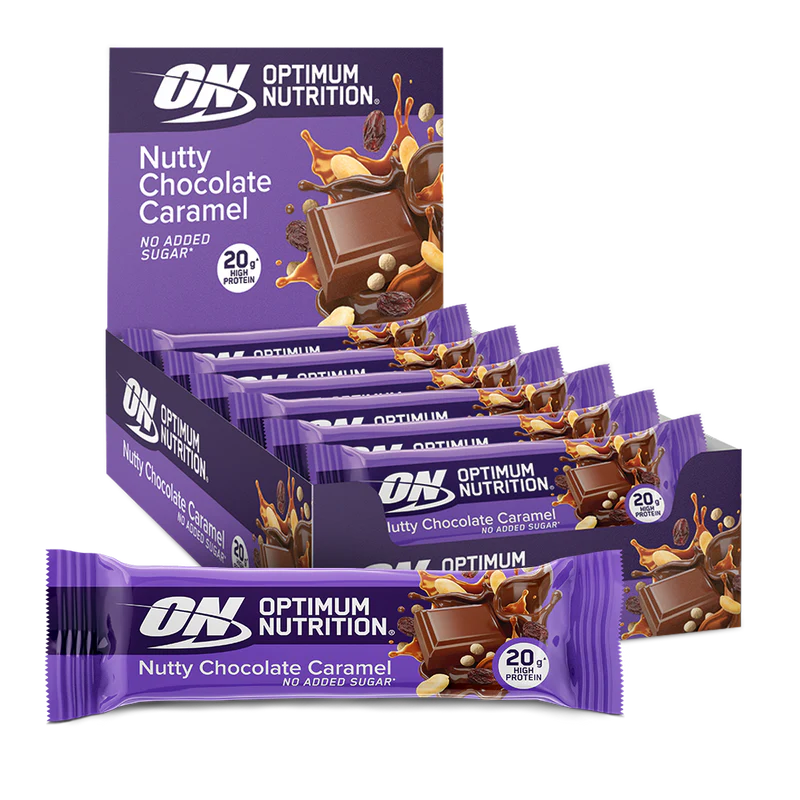 Nutty Chocolate Caramel Protein Bar - Barres protéinées chocolat, caramel & cacahuètes (10 x 70 g) - Optimum Nutrition